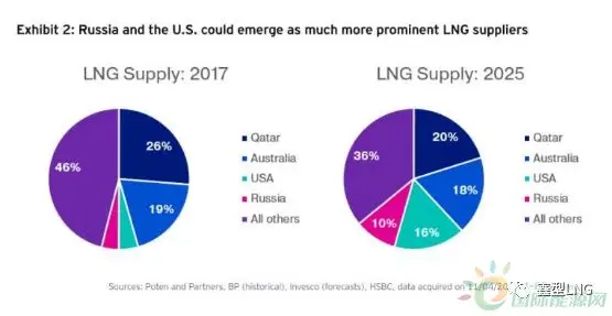 需求方面,中國(guó)和其他亞洲國(guó)家都在試圖調(diào)整能源結(jié)構(gòu),尋求安全、價(jià)格合理的清潔能源。天然氣也一直被認(rèn)為是替代能源。不過(guò)天然氣對(duì)煤炭和原油等傳統(tǒng)重污染能源的替代,僅限于俄羅斯和美國(guó)這樣的儲(chǔ)藏豐富的產(chǎn)地國(guó),或者歐洲國(guó)家以及日本等發(fā)達(dá)國(guó)家。 2018年,中國(guó)天然氣進(jìn)口超過(guò)日本,成為全球天然氣進(jìn)口第一大國(guó)。LNG 從“替代品”成了“必需品”。而未來(lái)LNG的最大需求方將不再是日本,而是中國(guó)和其他非日本的亞洲國(guó)家,比如印度。 供給方面,也在發(fā)生一些轉(zhuǎn)變。2016年,卡然而占全球天然氣供應(yīng)的三分之一。預(yù)計(jì)到2020年,卡塔爾的天然氣供給地位,將會(huì)被澳大利亞取代。三年前,美國(guó)還不是LNG市場(chǎng)的玩家,但到2020年,美國(guó)的LNG產(chǎn)量預(yù)計(jì)占到全球的六分之一。最后是俄羅斯,預(yù)計(jì)在未來(lái)十年至少占據(jù)全球G市場(chǎng)十分之一的份額,很有潛力成為下一個(gè)卡塔爾。